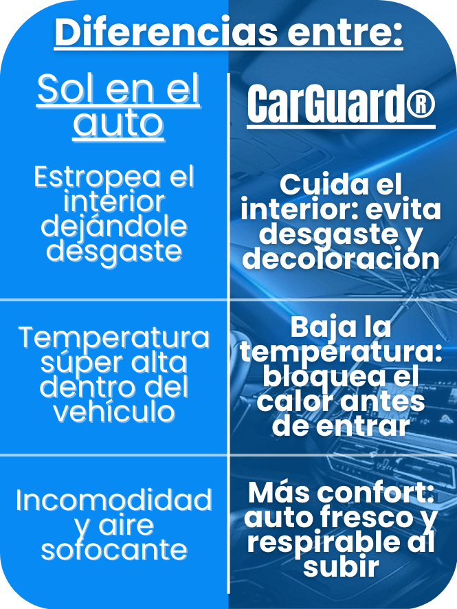 CarGuard® bloquea el calor del sol en tu parabrisas, reduce la temperatura interior y mantiene tu auto fresco desde el primer uso.